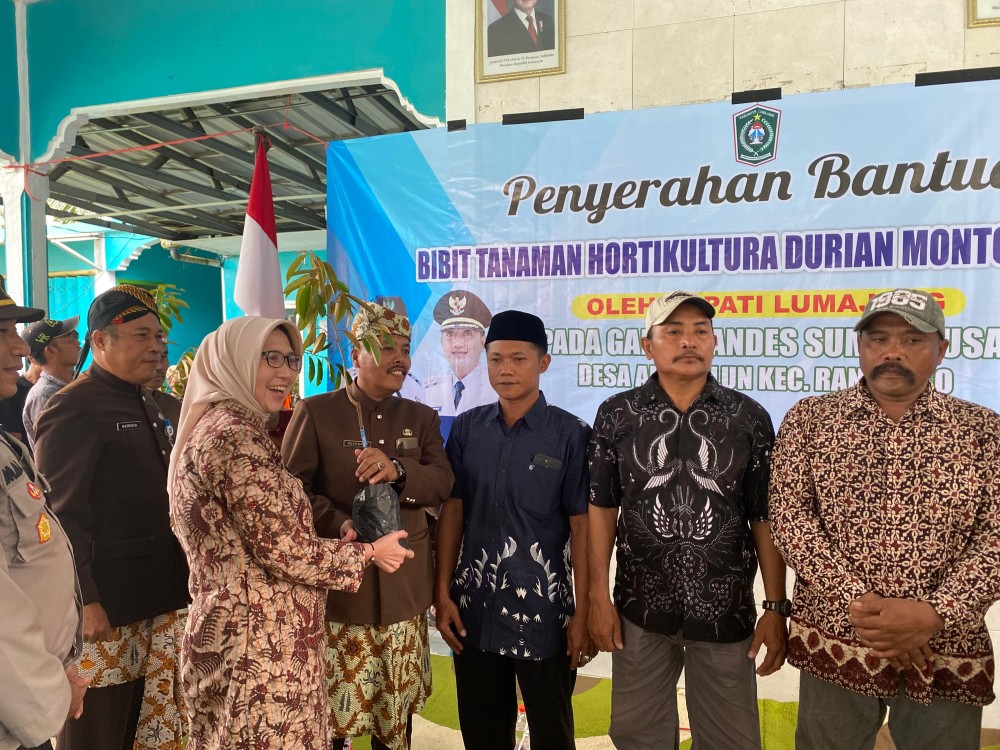 Kamis, 15 Mei 2025, Desa alun-alun Kecamatan Ranuyoso Kabupaten Lumajang menyerahkan Bantuan Bibit Hortikultura Durian Montong (Otong) kepada masyarakat dengan jumlah bibit 4095.